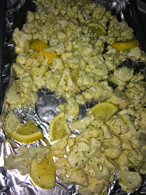 Another recipe I found on Pinterest. There's a place called Carson Kitchen here in Vegas that I absolutely love. We went there about a month ago for my second time to introduce it to my mom and aunt who where in town. It's kind of like a tapas place-smaller dishes to share. One of the dishes I ordered was the rainbow cauliflower and oh my god I was in heaven!!! It was a lemon roasted garlic cauliflower and I would have licked the bowl if I wasn't in public! We found out that the chef cooked the cauliflower over high heat on the stove, which I'm not entirely comfortable doing in my small apartment with not the best ventilation. So I tried to roast it in the oven. It was good but not as flavorful as Carson Kitchen's...guess I'll just have to go back there soon to eat it there!